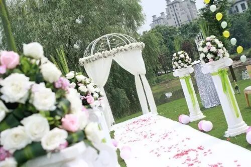 灿烂的阳光下,蓝天为你们作证,在如茵的草坪上接受亲友们的真诚祝福。大地、蓝天、阳光、绿草、小花,一同为这个浪漫的婚礼祝福,让大家都来走进美丽的大自然婚礼吧!