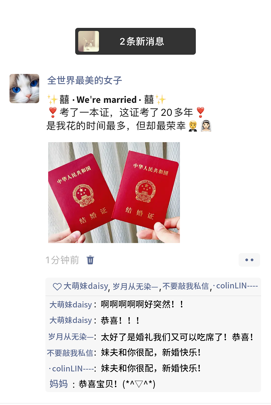 2025一定是非常好的一年,相信不少新人都打算在这一年领证结婚,完成自己的人生大事,今天小欣给大家分享下适合发朋友圈的官宣文案!